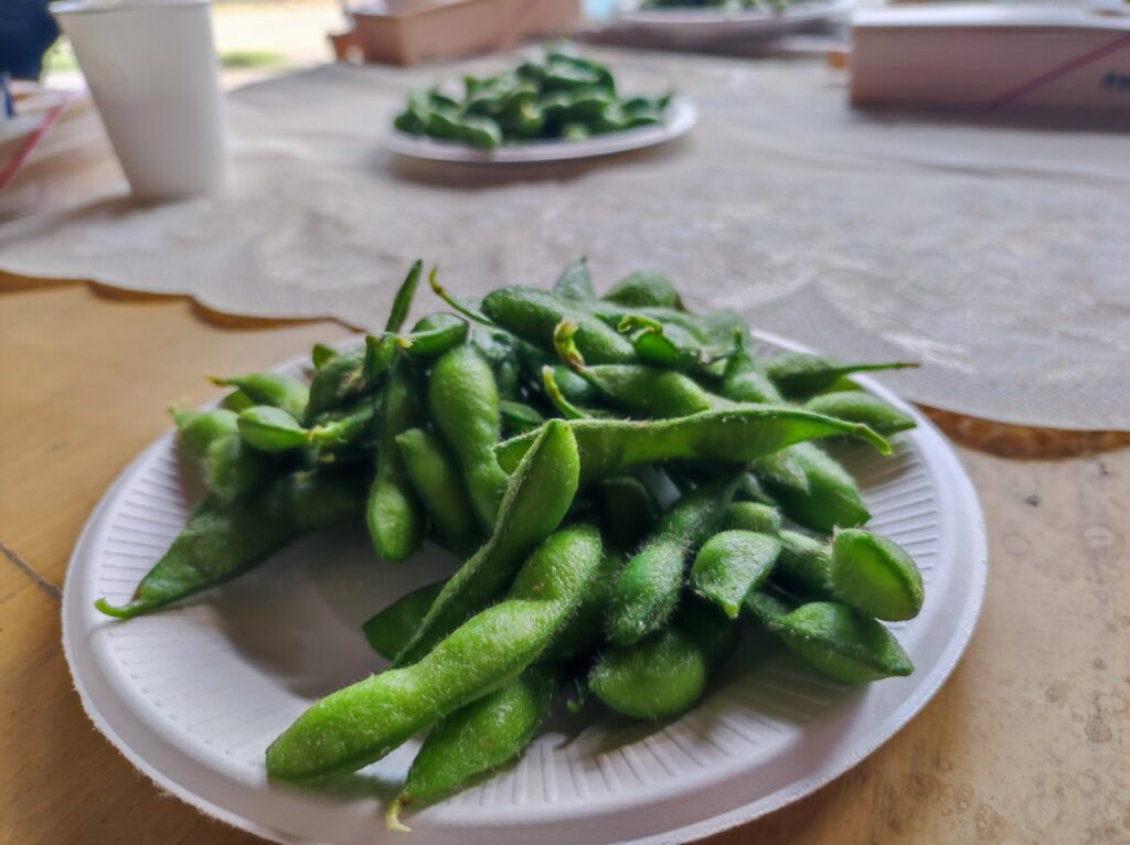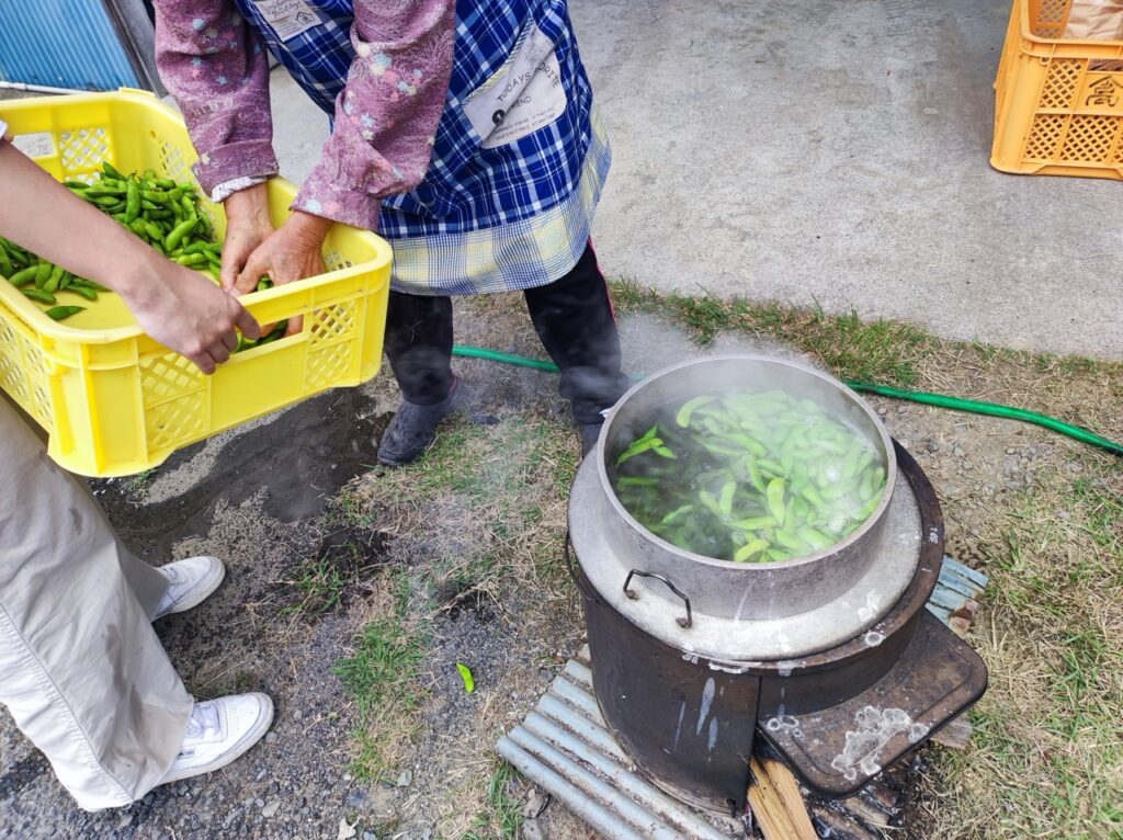 到訪的季節剛好是曙大豆尚未成熟的狀態「毛豆」,所以很幸運地體驗到農作物從採收到上桌的過程。