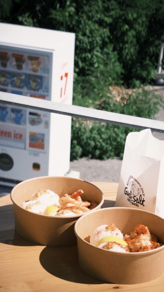 我們點的是蒜香口味,飯上面放上蒜頭,蝦子也充滿濃厚的蒜香,和鮮甜多汁的蝦子真的是絕配!