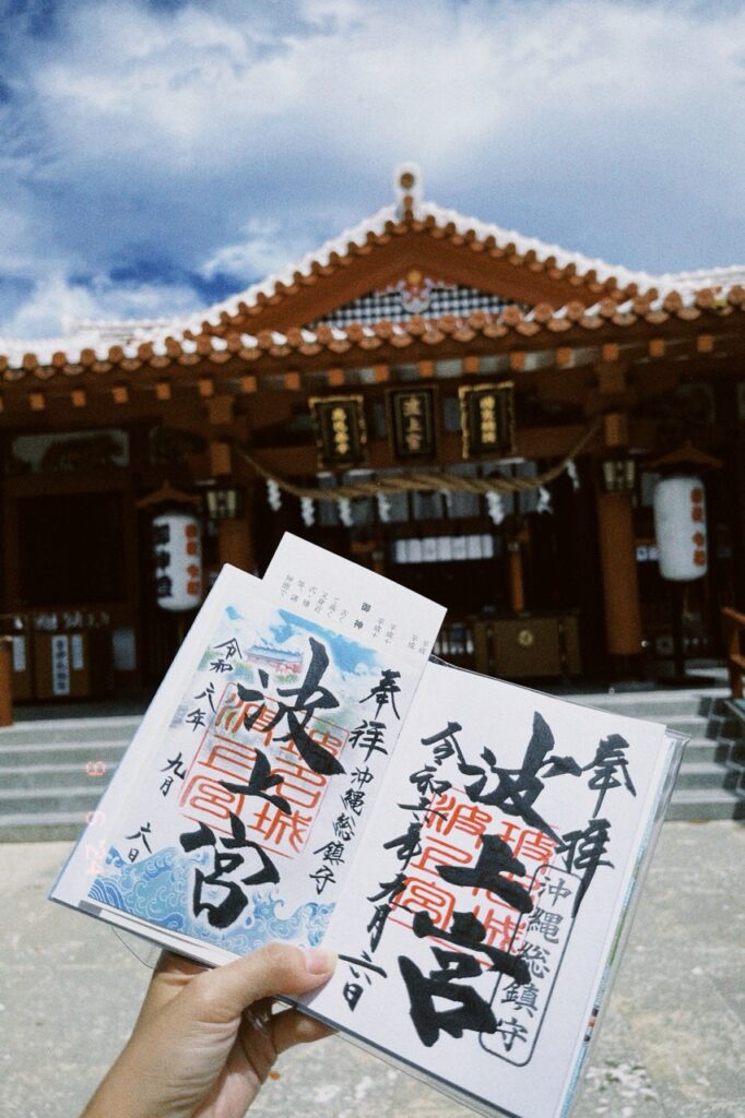 由於這次沖繩是開車自駕遊,第一站就先來波上宮「拜碼頭」,祈求行車平安、旅途順遂。當然,來到神社,怎麼能不寫一張朱印呢!波上宮除了定番朱印外,也會根據季節,推出季節限定的朱印。這次我兩個都寫啦,真的沒辦法抵擋日本朱印的魅力!