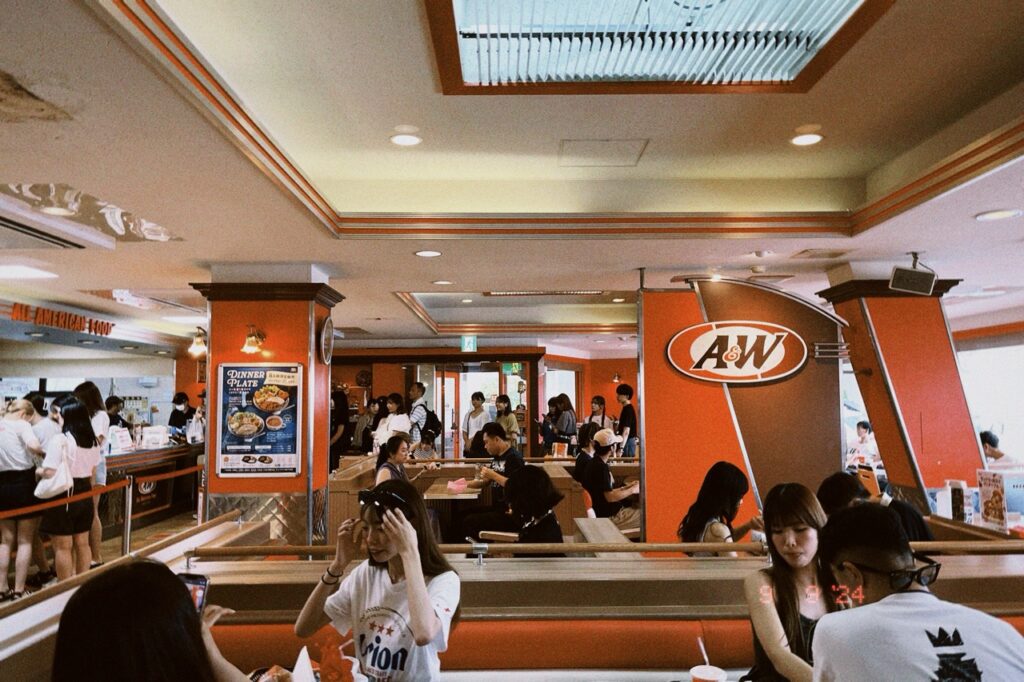 沖繩有許多 A&W 的分店,我很推薦到牧港店看看,這邊保留了 Drive-in 車道,也可以像美國速食店那樣,在店外透過像加油站的裝置向店內點餐,再由店員送出來,完全不用下車就可以品嚐美味的漢堡!
