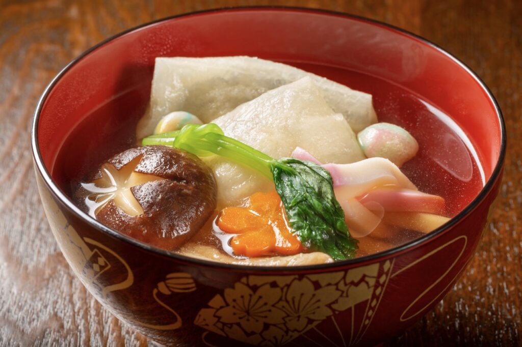各地區的「雜煮(お雑煮)」做法不同,基本上就是年糕湯。在關東地區多為方形年糕,關西地區則常使用圓形年糕。這道料理不僅美味,更象徵著家人團聚在一起,一同享用美食的溫馨時刻。