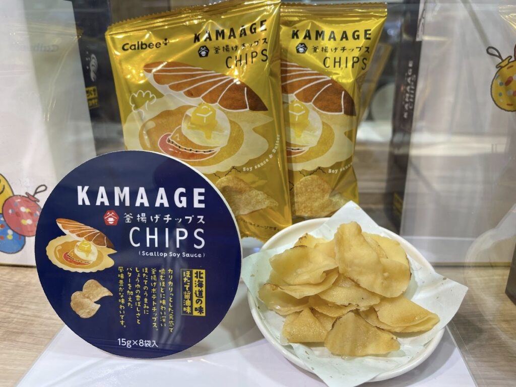 特別推薦的這款「釜揚げチップス ほたて醤油味」洋芋片,這款零食將鹹香的帆立貝與濃郁醬油完美融合,無法抗拒的美味,讓人一片接著一片停不下來!