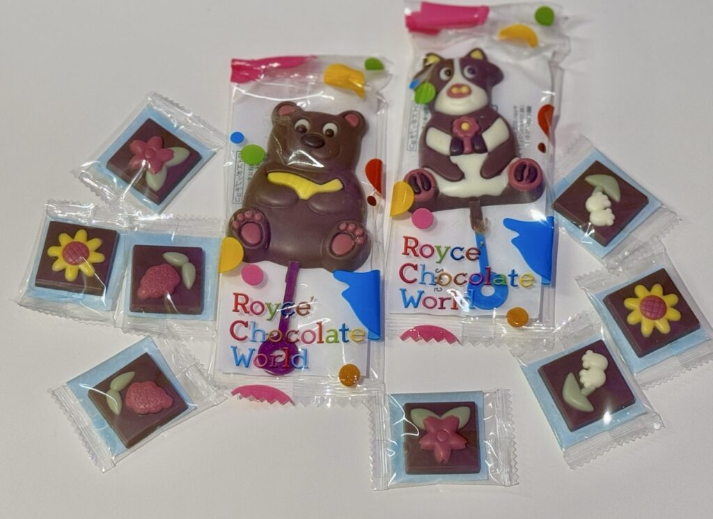 來到這邊,不僅可以透過玻璃窗觀看巧克力的製造過程,還可以在這邊買到新千歲機場限定的各式巧克力,像是大型動物巧克力,或是機場限定的巧克力禮盒。
