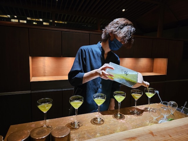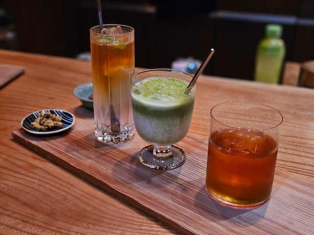 晚餐過後小憩一會兒,泡完湯,建議在睡前來飯店內附設的茶酒吧坐坐。「副島園 the Bar」是「和多屋別莊」內的一間獨特酒吧,結合飲茶與品酒,以嬉野茶為主題,將當地的嬉野茶與酒精飲料完美融合,提供創新的茶酒體驗。這裡提供多種嬉野茶製品,包含以煎茶、焙茶和紅茶為基底的特調飲品,各式各樣的口味,突顯茶香風味,讓人驚喜。能喝酒的朋友,值得試試看調酒。將嬉野茶融入現代化的調酒手法,有多款茶雞尾酒,在睡前來一杯,和同行友人或吧台的工作人員邊喝邊聊,相信會帶來一段難忘的深夜時光。