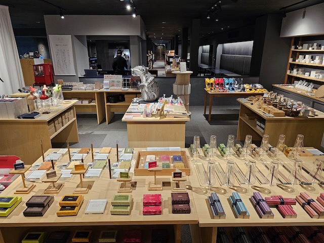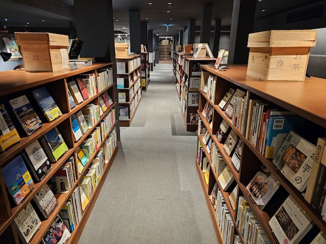 改裝後的一樓是一處集合多元功能的空間,包括販售佐賀土產、嬉野茶的商店、高質感選物用品店及特色書店。我對「BOOKS&TEA 三服」這間店感到特別驚喜。這是一個充滿文化氣息的空間,結合閱讀與品茶的趣味,於2021年開幕,成為該旅館改裝計劃「Reborn Wataya Project」的一部分。「BOOKS&TEA 三服」不僅是一間書店,更是茶文化、日本選物店與文學愛好者的聚點,將旅館從單純的住宿場所,轉變為旅人即使不留宿,也會想要特地到訪的旅遊目的地。