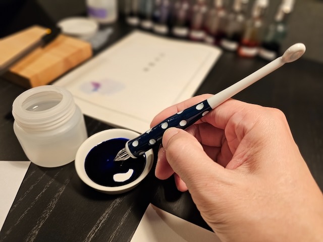 「色寫經室」是一項結合藝術與禪意的體驗活動,我特別參與體驗這項活動,在靜謐空間中,使用特殊的玻璃墨水筆,臨摹經文或文學作品,當然,也可以寫自己想寫的文字。寫字是需要專心的,在書寫的過程裡,不知不覺感受到專注與平靜的力量。忙碌的都會人,倘若靜不下來,這或許是一個很好的磨練機會,培養耐性和專心度。