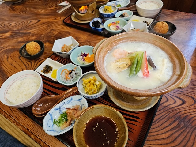 佐賀縣嬉野市的「宗庵よこ長」是一家以傳統日本湯豆腐聞名的老字號餐廳,創業已有數十年歷史。餐廳以當地名產嬉野溫泉水製作的湯豆腐為主打,我特別推薦點「特選湯豆腐定食」,熱騰騰的湯豆腐小火鍋,搭配清爽的小菜,可以吃到嬉野豆腐的精髓。湯豆腐因為溫泉水的天然優質成分,使得豆腐在煮沸後變得如絲綢般細緻滑嫩,入口即化,風味絕佳。餐廳很貼心,桌上特別放有中文解說卡,告訴大家品嘗和調味湯豆腐的正確步驟。