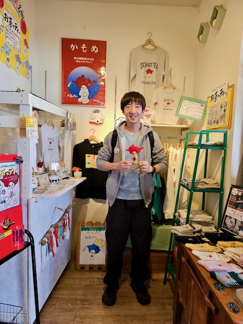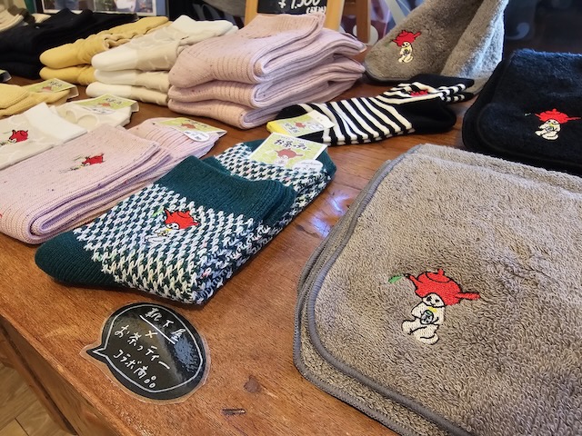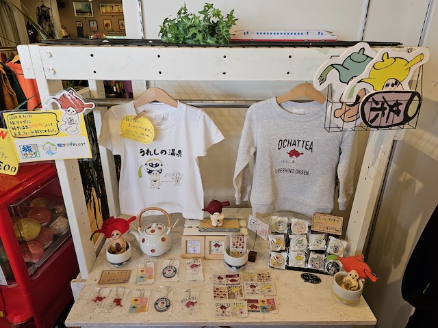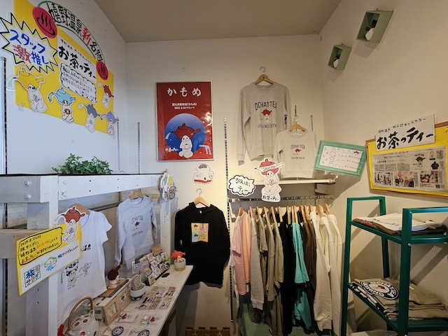 「ASAHIYA」則是一家服飾雜物店,店內充滿溫馨的氛圍。特別來這間店,其實不是為了買衣服,而是為了嬉野非官方吉祥物產品「OCHATTEA」(お茶っティー)。「OCHATTEA」是本店店長的女兒颯來和櫻來所創作的嬉野非官方吉祥物。新冠疫情期間,孩子們在家創作了這個可愛的茶妖精,希望能宣傳嬉野,讓更多人來溫泉小鎮觀光。「OCHATTEA」誕生後,深受當地居民和旅客的喜愛,一炮而紅。店內設有專區展示各式周邊商品,包括T恤、襪子、手帕等,風格獨特,充滿童趣。颯來和櫻來筆下所創造出來的「OCHATTEA」,不僅是可愛而已,還讓人看到了當地人如何珍愛自己的鄉土家園,更間接傳遞了嬉野的茶文化與人情味。