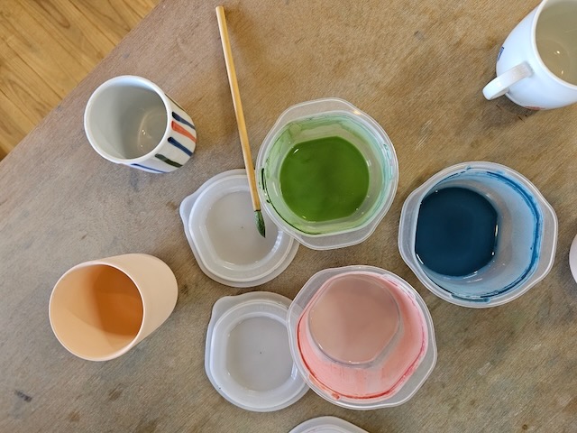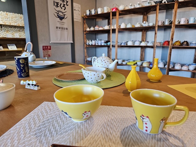 特別值得一提的是,會館提供親自繪製燒陶的體驗課程。在專業人員的指導下,參加者可以親手捏製陶土,創作屬於自己的吉田燒作品。如果時間不夠,也可以省略捏陶部分,直接選擇會館提供的半成品陶杯、碗或盤子,體驗的部分則從上色開始,完成後交給會館,讓他們替你上釉,最後寄到你家(目前僅提供寄至日本境內地址)。