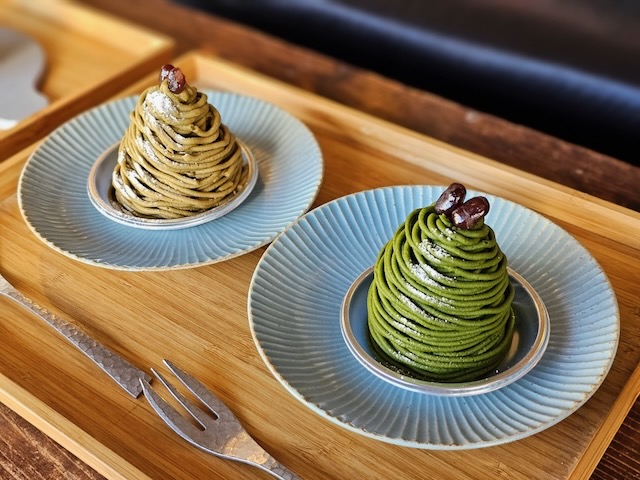 首先是「嬉庵」(うれしい庵),這是一家結合傳統與創新的甜點咖啡店。店內以嬉野特產的綠茶和焙茶為主要原料,製作出多款獨特的甜點。其中,抹茶蒙布朗和焙茶蒙布朗最為推薦,濃郁的茶香與細膩的口感完美融合,非常好吃。另外也有其他嬉野茶為基底的創意甜點,如抹茶芭菲和焙茶冰淇淋,透過甜品感受嬉野茶的獨特風味。