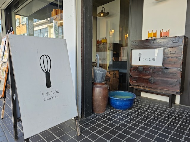 小鎮散步的途中,邊走邊看,挑了三間喜歡的店進去逛逛。一間是能吃到用嬉野茶製作而成的咖啡店「嬉庵」(うれしい庵);一間是服飾雜貨店「ASAHIYA」,能買到可愛的人氣嬉野非官方吉祥物產品;最後一間是「井手酒造」,可以品嘗到當地的名酒。
