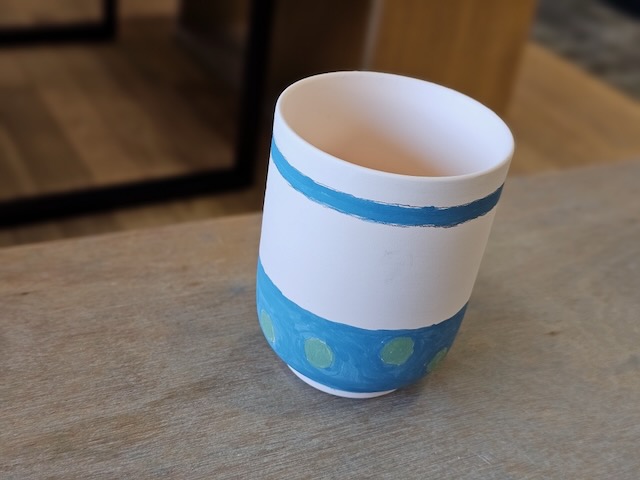 我選擇杯子作為上色體驗。上色不難,難的是畫出像樣的東西來……我有自知之明,畫不出什麼美麗的圖樣,所以就用一些幾何圖形,線條和圈圈充數。一邊畫一邊再次證明我實在沒什麼繪畫天份。一個多月後,寄來了上釉完成的杯子,意外的還滿有模有樣的耶!杯子下面有寫著自己的名字,我擁有了一個獨一無二的有田燒,嬉野旅程的紀念。體驗課程建議提前預約體驗課程,以確保名額。