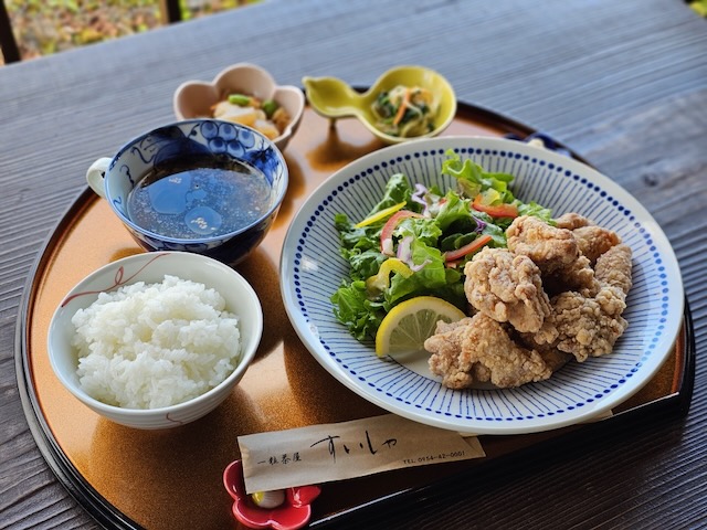 眼睛欣賞完嬉野的大自然以後,肚子也該好好照顧一下才行。午餐該去哪裡吃呢?在當地人的引薦下,我來到佐賀縣嬉野市的「一粒茶屋水車」(一粒茶屋すいしゃ)餐廳。這間店以精選當地食材和自家生產的米飯為特色,提供豐富的日式料理。餐廳環境融合傳統與現代風格,內部裝潢以木質元素為主,營造出溫馨且舒適的用餐氛圍。餐廳鄰近河畔,設有露天座位,可在享用美食的同時欣賞自然景色,感受寧靜的用餐體驗。