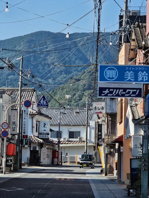 我非常喜歡「希博爾德之湯」周圍的嬉野街道,樸質的鄉間風景,從昭和味滿滿的建築、店家、看板風格到街道地磚,以及遠方連綿的山派,拼湊成這個靜謐的小鎮,對都會人來說,一景一物,都使人感到放鬆了緊張的身心。