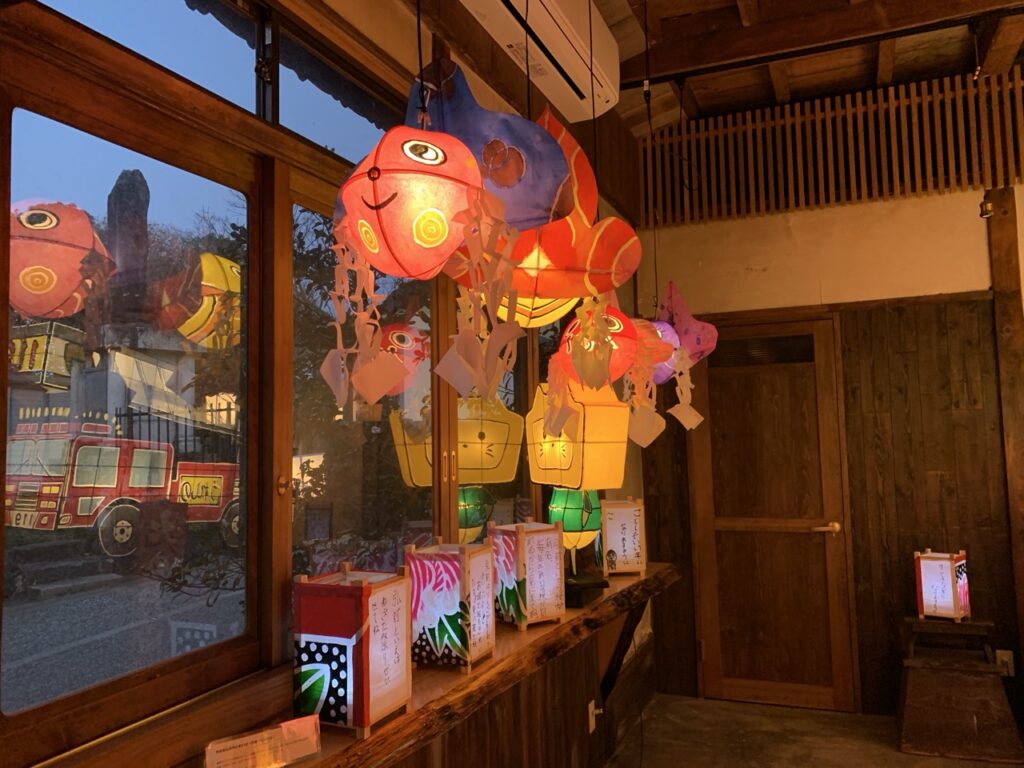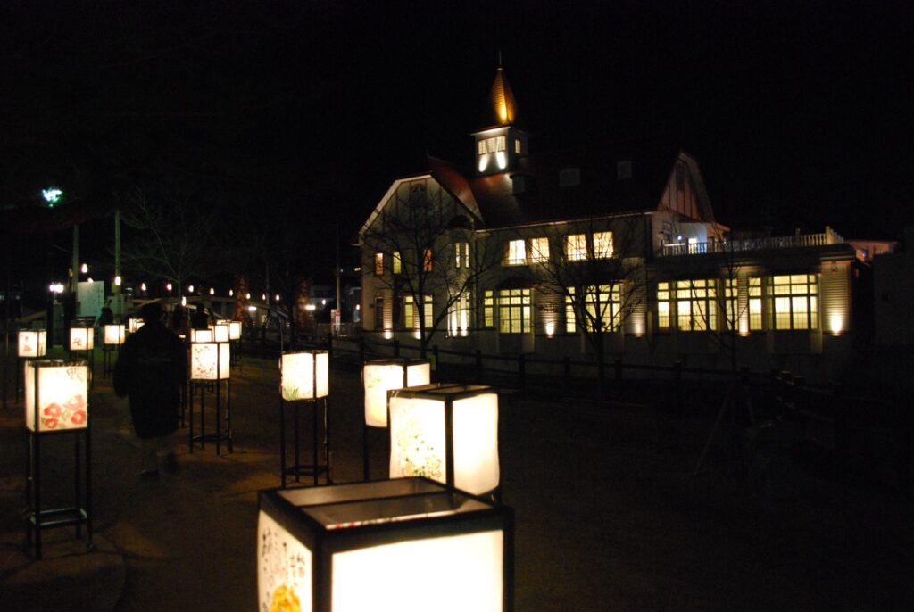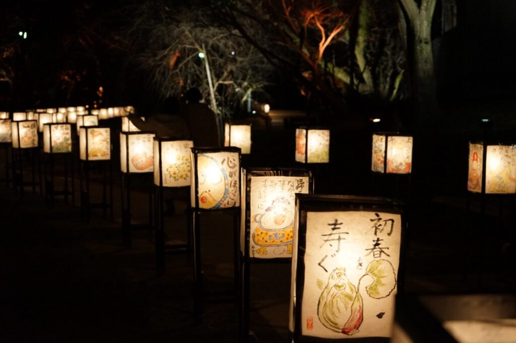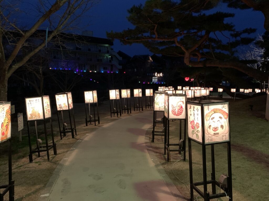 溫泉公園則擺放由當地繪手紙教室製作的「繪手紙燈籠」,燈籠上描繪的圖案由當地居民創作,既有孩子們天真可愛的插圖,也有具備專業水準的藝術作品。這些繪手紙燈籠,不僅讓公園增添溫馨的氣氛,也為參觀者帶來視覺上的樂趣與感動。