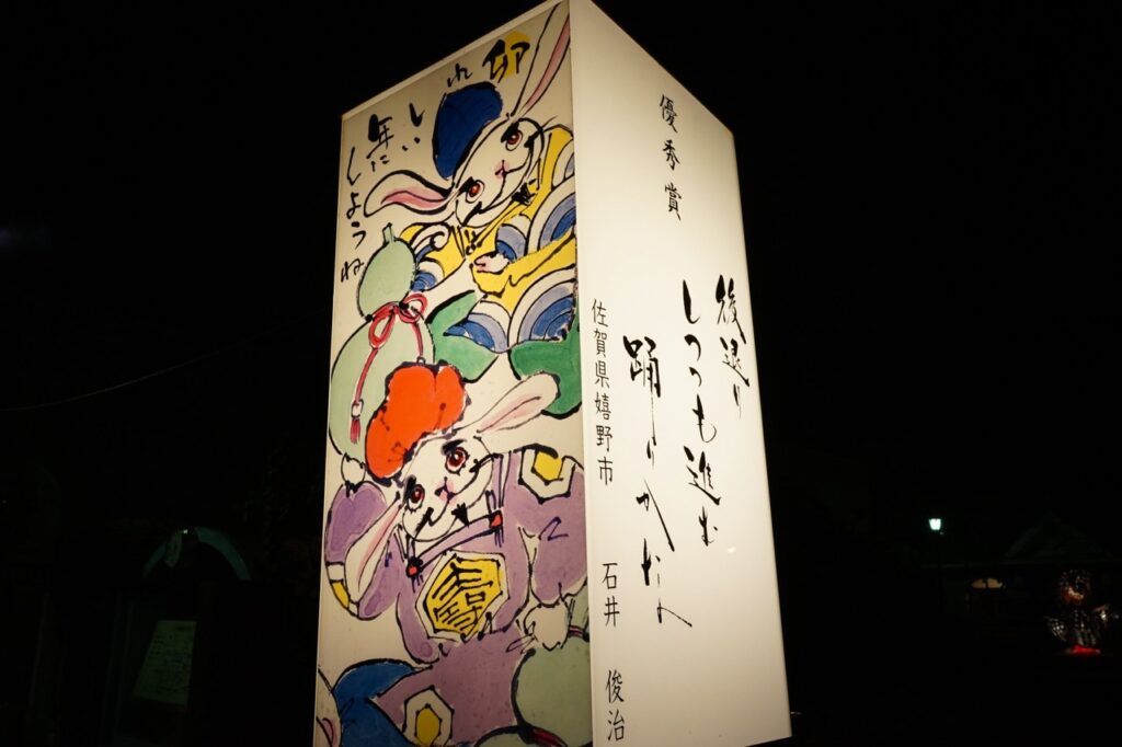 最值得一提的是,本通商店街上的「百句百燈華燈籠」,這些高達 2 公尺的燈籠,刻有由公開徵選出的 100 則俳句與插畫,排列成一條優雅的光之小徑。華燈籠不僅照亮了商店街,還為訪客帶來溫暖又富有詩意的光輝。
