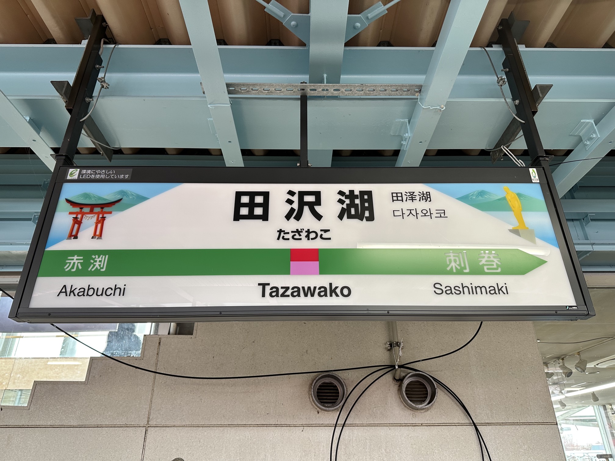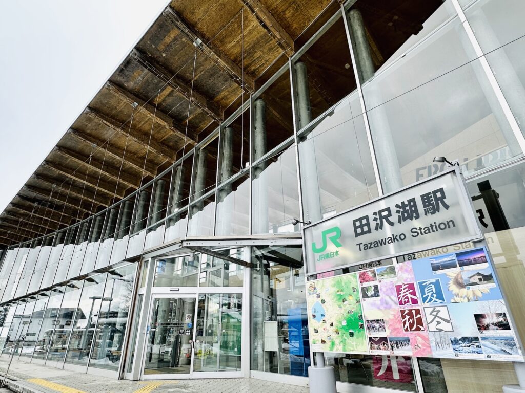 從東京出發,差十分滿三個小時的車程,可抵達東北秋田縣的田澤湖站。從東京到秋田的新幹線很特殊,由兩種不同車型結合成一整列,前半部分(也是大部分的車廂)是東北新幹線,後幾節車廂才是秋田新幹線。如果買的車票是去秋田,那麼新幹線開到盛岡站以後,兩款車廂就會分開。東北新幹線的車廂繼續往北跑,秋田新幹線的車廂則往田澤湖、角館方向前進。