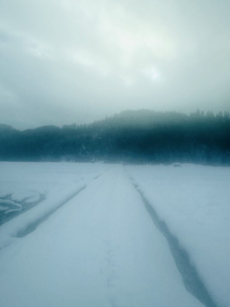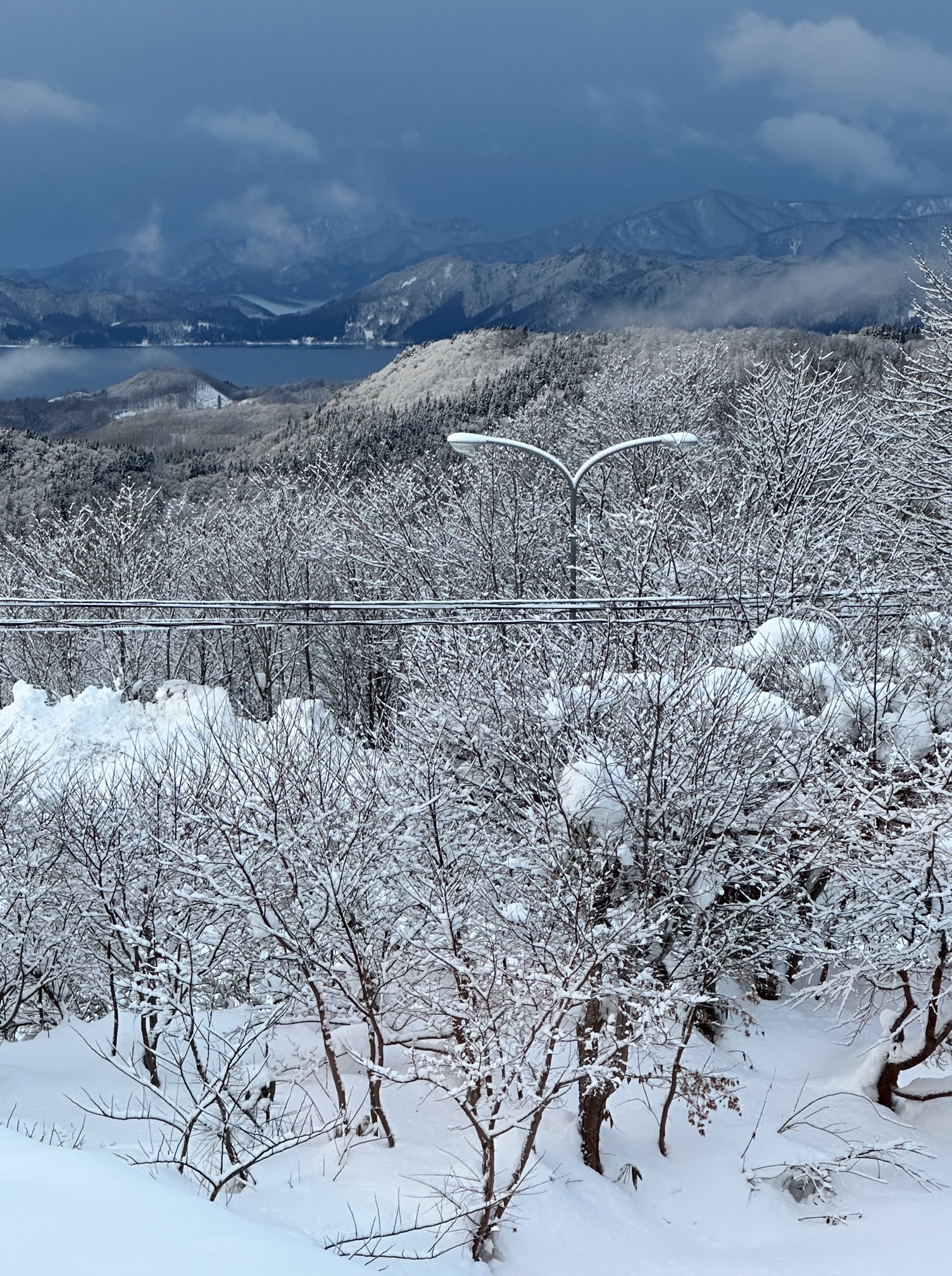 前往田澤湖高原溫泉方向的巴士搖搖晃晃,載著我們橫越過山間的雪原。用手拭去車窗玻璃的霧水,在朦朧中窺見車外的雪景,像上了夢的濾鏡,任意一個角度,停格,都是詩意的電影場景。