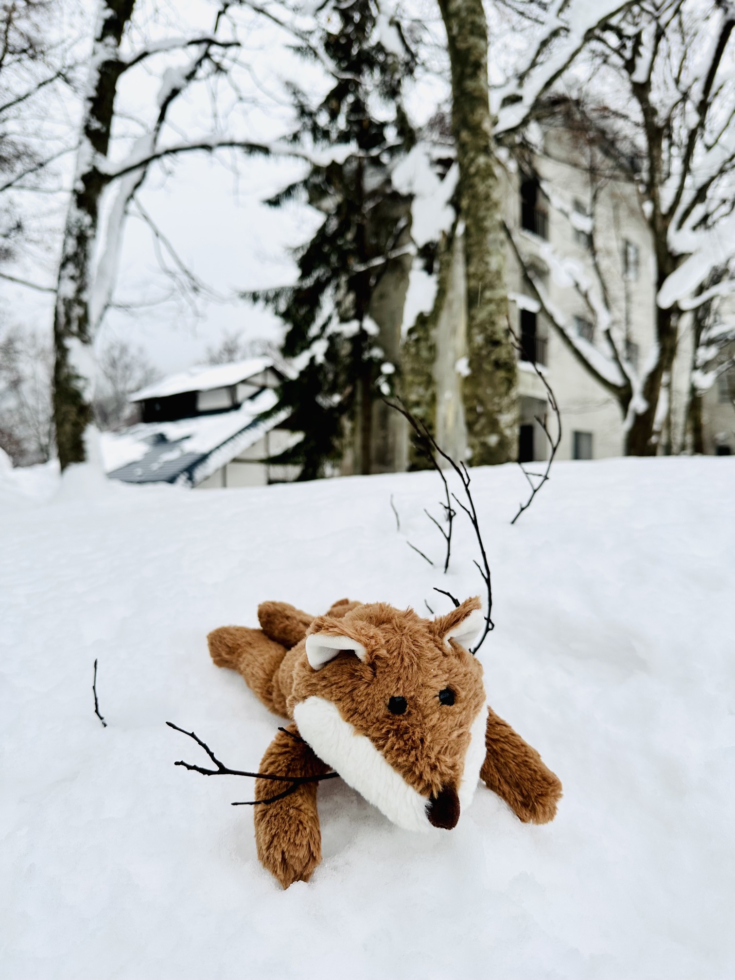 雪勢忽地轉小,軌道上空的雪花,被風吹進了月台,落在我們的毛帽上。毛帽是貼心的謙君在出發前買的,同款兩色,一人一頂,成為這趟旅程不可或缺的保暖品。帽上繡著兩隻圓溜溜的,帶著好奇心的眼睛,靜靜的,見證了這一年,我們的冬天。