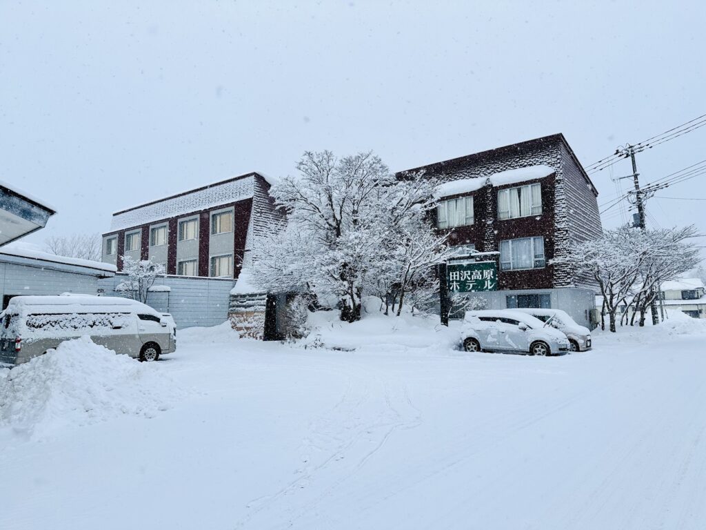 今晚,過夜的旅館是「田澤高原飯店」。這是一間看起來有點年份的旅館,但維持得很整潔,旅館主人夠親切。房間的大小適中,走溫馨路線,窗外的視野好,可望到遠方的田澤湖和疊嶂環山。桌上擺著一張紙,印著今日電視節目表,在一旁的空白處,旅館主人手寫了一段話,是翌日的天氣預告,提醒我們明天的氣溫更低,雪更大。