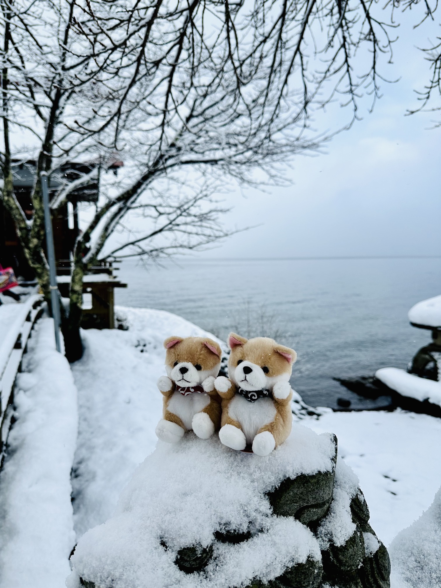 禪意歸禪意,可愛終究還是無敵。在田澤湖車站買的可愛的秋田犬玩偶,當然,美景少不了他們入鏡。