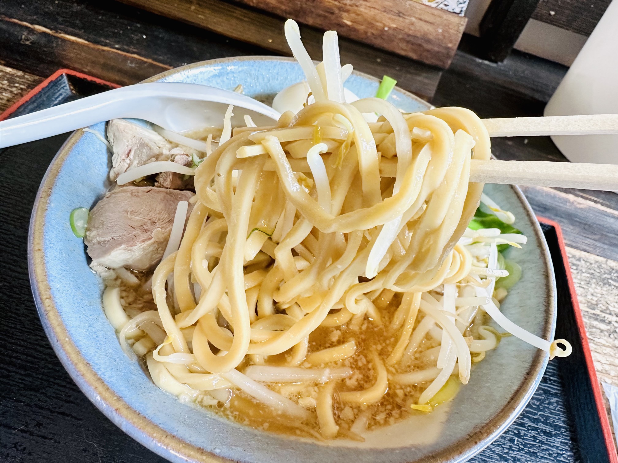我們到訪的這一天,恰好遇上限定拉麵日,既然這麼巧,當然就點拉麵吃。拉麵湯頭濃郁,給的肉塊很豪氣,粗麵條偏硬,有嚼勁,吃完一碗充滿飽足感,終於補充了足以抵抗戶外寒冬的能量。
