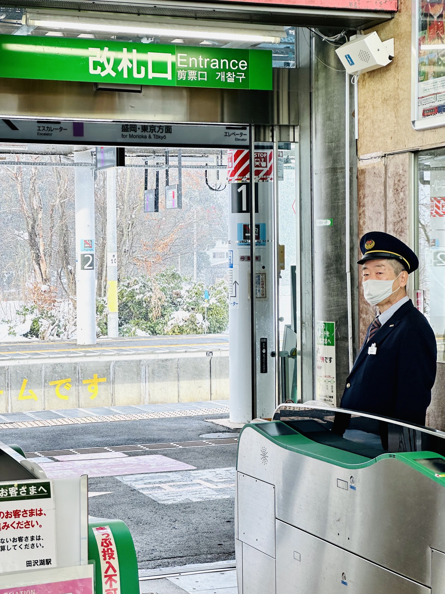 新幹線,是見證日本列島氣候差異的行動觀測站。不久前,經過埼玉縣的時候,還能遠眺到晴空下雪化妝的富士山,但車到岩手縣盛岡時,卻變成陰雨的天氣。雨會一直下嗎?才這麼想著呢,一回神,列車停靠在小岩井站時,天空降下的已不是雨,而是飛舞的白雪。