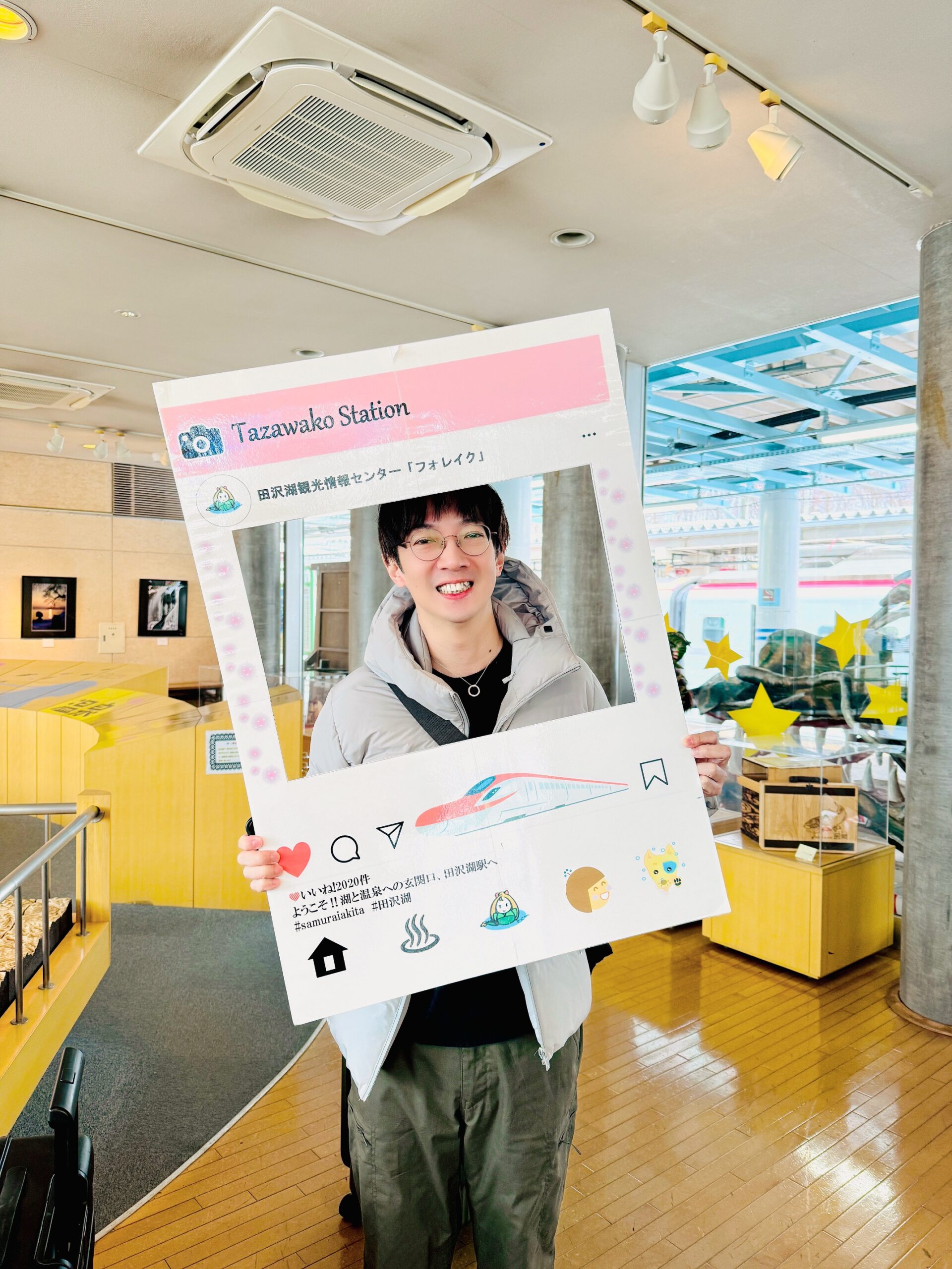 當我從目的地「JR田澤湖站」走出來時,已置身在跟東京截然不同的另一個白色世界。車站外有大量積雪,但顯然已經有人鏟雪過了,才能闢出行走的道路。看路旁的積雪高度,可想見這幾天的雪有多大。