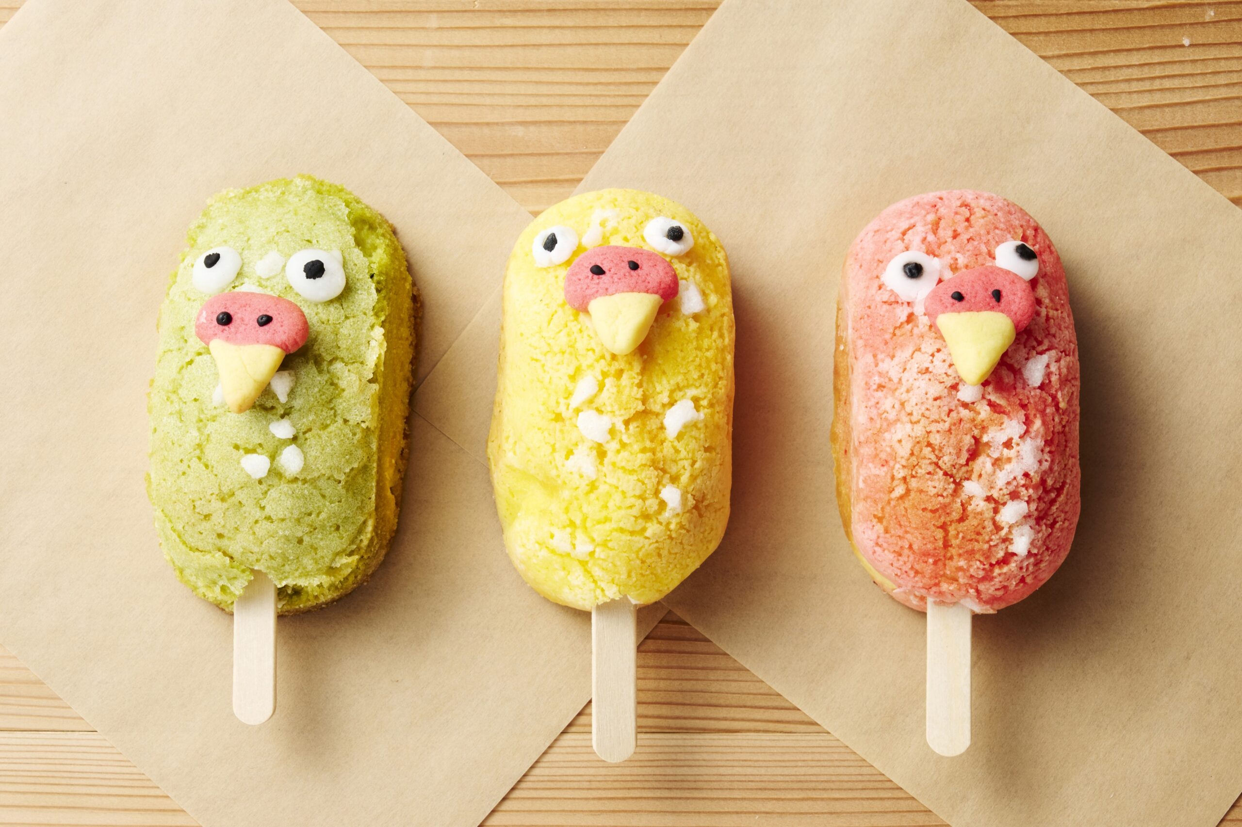 在「大陸橫斷飛行咖啡廳」的露台區,推出了全新的「鸚鵡麵包」。這款造型以鸚鵡為靈感的冷藏麵包,內餡包裹著奶油,外型生動可愛,有紅、黃、綠三種顏色可選,是一項趣味十足又美味的創意甜點。