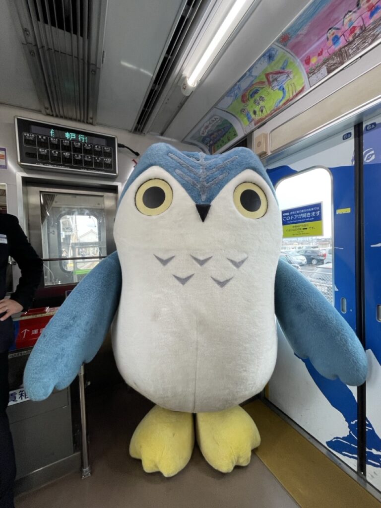 搭乘這趟列車像是一次文化體驗,沿途的田園風光與山村景色,讓人彷彿穿越回忍者活躍的時代。更幸運的是,我還與伊賀鐵道的吉祥物「ふくにん」一同搭車,讓這次旅程真的是難忘的經歷。