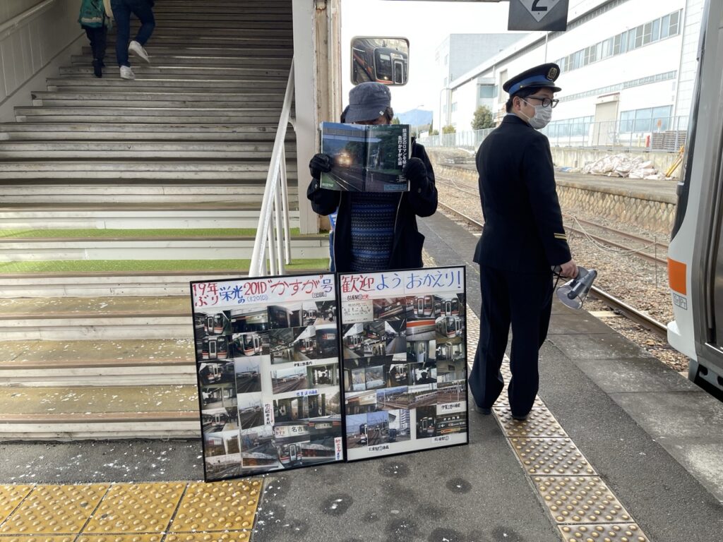 當天,這趟臨時列車吸引大批鐵道迷和攝影師,他們手持專業相機,在沿途捕捉列車穿越田園與山巒間的身影。對許多人來說,能再次見到這輛列車駛過關西本線,是一次難得的機會。特別是在伊賀上野站,不少人聚集在月台,用鏡頭記錄下這段歷史性的瞬間。