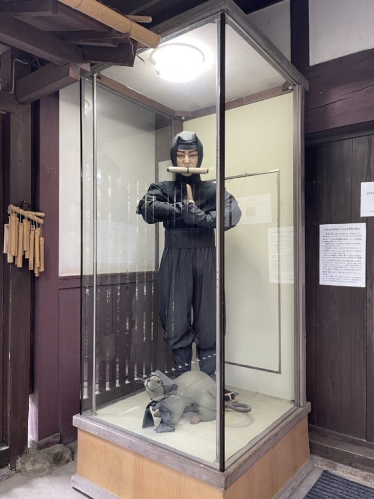 此外,我還發現自己進入建築時,居然被屋頂上的忍者所監視,但完全沒有察覺!現代人生活在和平的時代,可能已經不再像過去那樣敏銳了。在參觀過程中,透過工作人員說明才驚訝地發現,從屋內的小縫隙中,忍者其實在偷偷地觀察我們。
