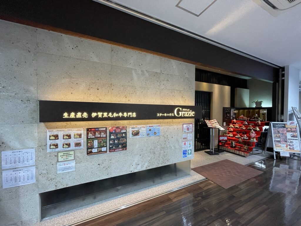 旅程的第一站,我選擇了位於伊賀市中心的「Grazie(伊賀肉ステーキハウス グラツィエ)」,這是一家專門提供伊賀牛的高級餐廳,用餐環境高雅舒適,天花板挑高設計,讓空間顯得格外舒適。