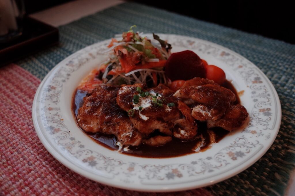 遊び庵提供雞肉套餐,並有番茄與薑汁口味可以選擇,鮮嫩多汁的雞肉與老闆的特調醬汁,配上白飯真的是絕佳組合。如果不趕時間,不妨選個窗邊座位,一邊品嚐料理、一邊細細品味角館風情吧!