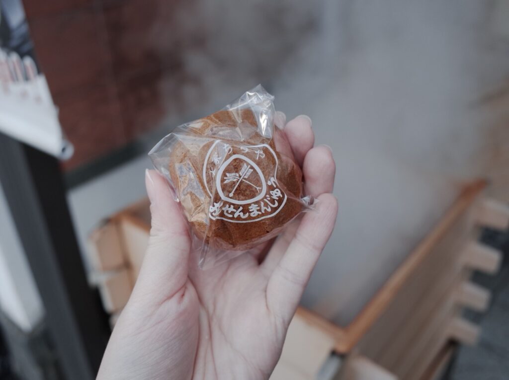 雖說是饅頭,但跟我們一般吃到的饅頭完全不同。溫泉饅頭小小一顆,外皮非常柔軟,內餡以紅豆泥為主。看似樸實,卻經過多道嚴格程序製作而成的饅頭,讓人吃完一顆,忍不住又回店裡買第二顆享用。