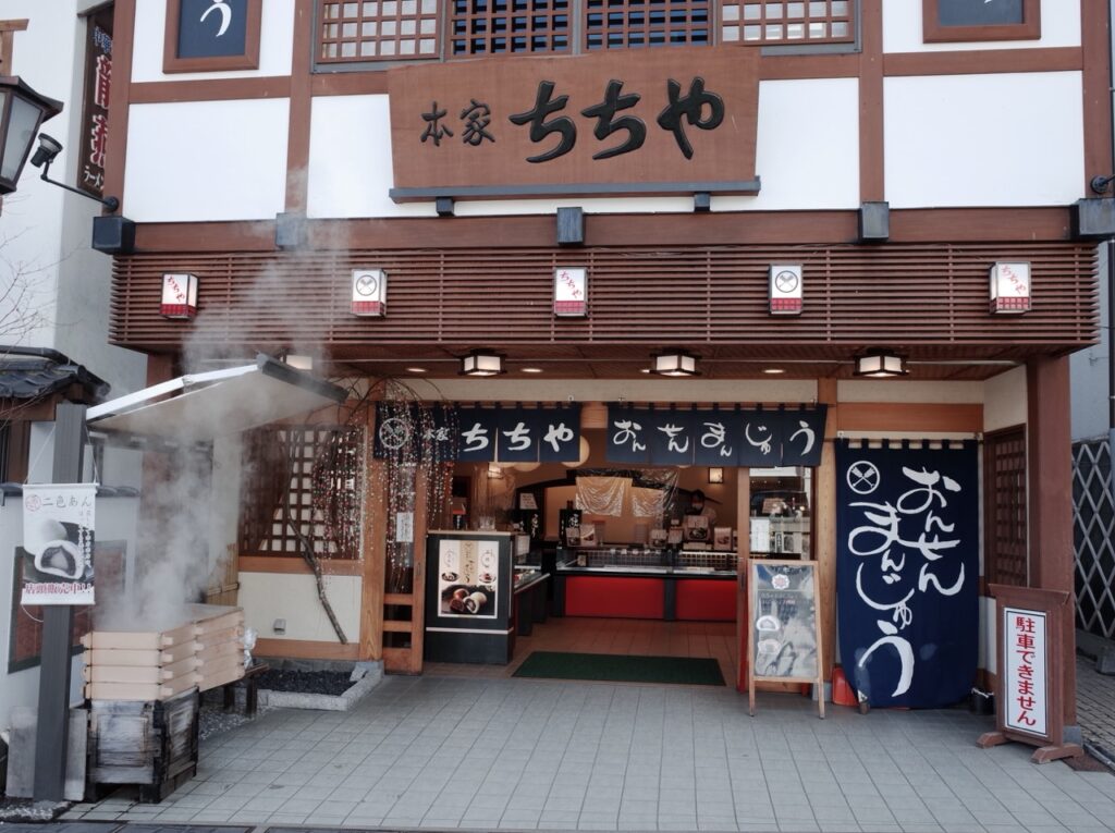 「本家ちちや(chichiya)」是草津溫泉地區的老字號溫泉饅頭店,已有百年以上的歷史。除了有伴手禮用的包裝,還可以購買現蒸的溫泉饅頭,拿到時還會有點餘溫呢!