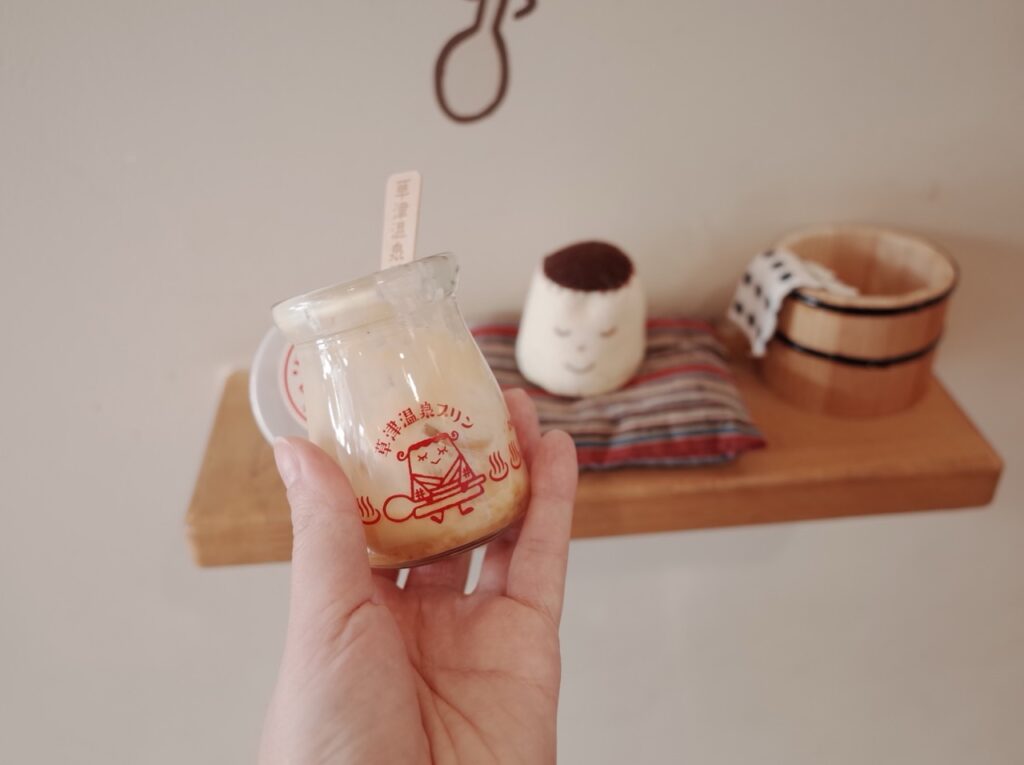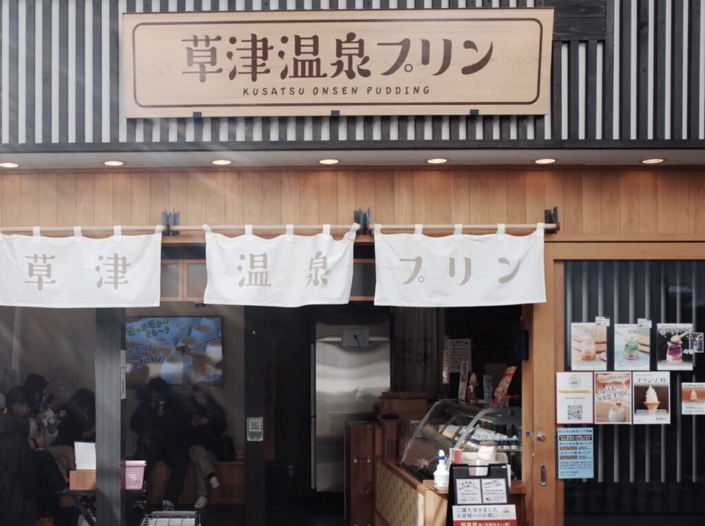 「草津溫泉布丁(草津温泉プリン)」使用群馬縣產的「榛名牛奶」製作,品嚐時還可以看到一顆顆的黑色香草籽,可見其真材實料。不管是什麼時間,都可以看到草津溫泉布丁前有不少的人潮排隊,不過通常不需要排太久的時間,就可以買到囉!