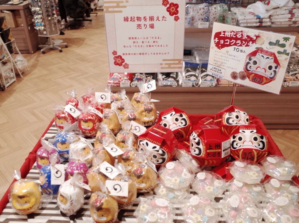 群馬縣是日本「達摩(だるま)」的最大生產地,達摩上有象徵長壽的鶴(眉毛)與龜(鬍鬚),被視為日本的重要吉祥物。買了達摩之後,先在達摩的右眼塗上黑色並許願,待願望實現時,再將左眼也塗黑。