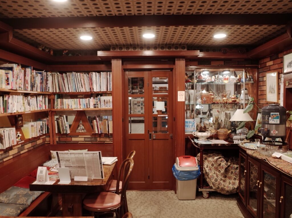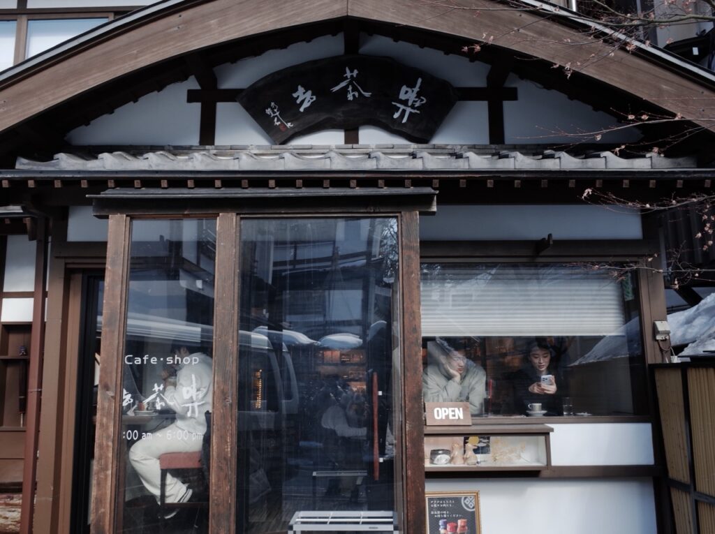 「喫茶去(きっさこ)」是位於「奈良屋旅館」裡的咖啡廳,在晚上18點前,開放給一般旅客喝咖啡、享用甜點;晚上18點過後,則成為住宿者專用的酒吧。