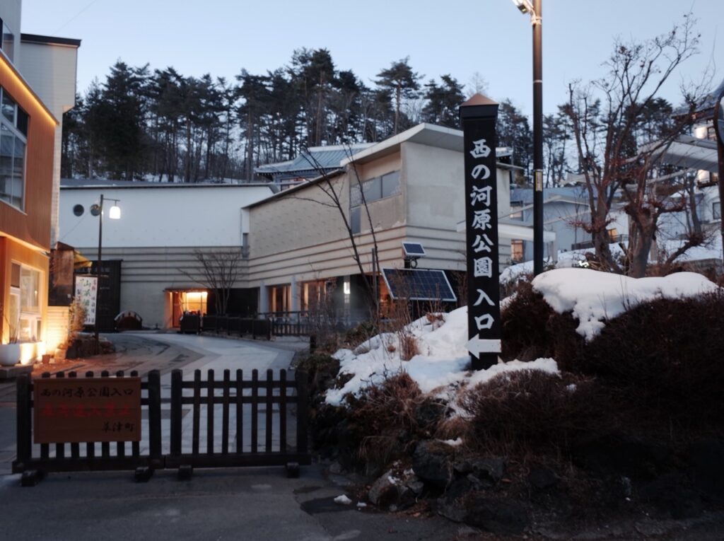 從湯畑前往「西之河原公園(西の河原公園)」,徒步約7分鐘左右。西之河原公園中有一個大型露天溫泉,最多甚至可以容納100人!而且因為是露天溫泉,很適合草津溫泉的高溫度泉水,泡起來不會太燙,水溫很剛好。