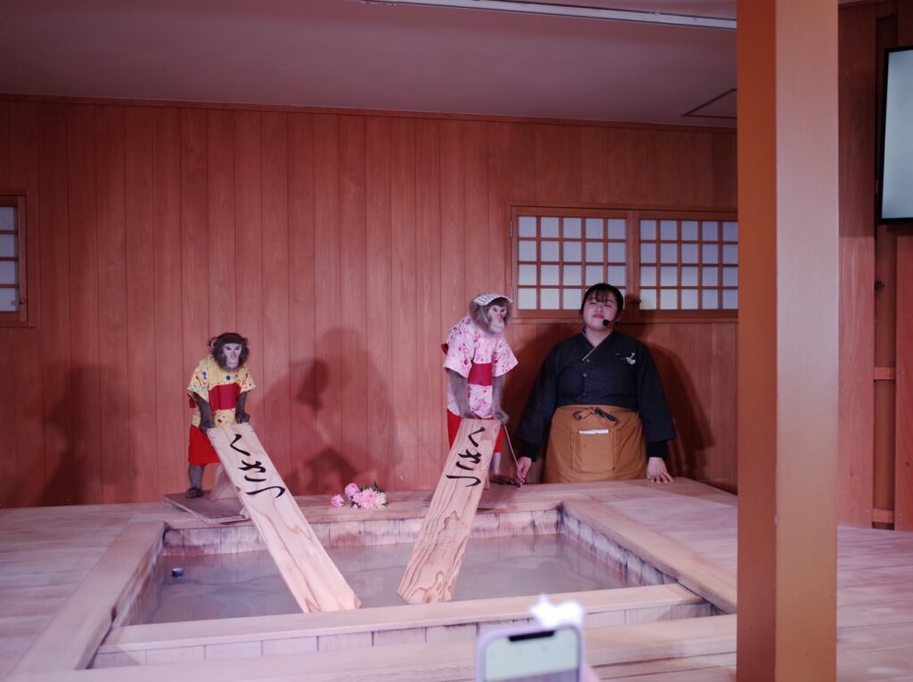 除了熱乃湯的湯揉表演之外,還很推薦大家來看這個「猴子秀(おさ湯)」。兩隻可愛的猴子會向觀眾演示,如何正確地降低溫泉的溫度。因此除了可以觀看精彩的表演,還可以學到不少溫泉知識呢!