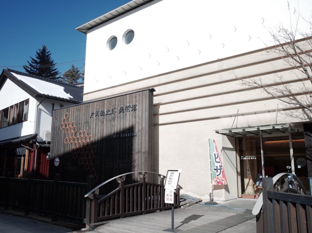 而在西之河原公園入口處的「片岡鶴太郎美術館」,可以欣賞150個展示作品,包含墨彩畫、陶器、漆器等,很適合安排在草津溫泉街的行程當中。