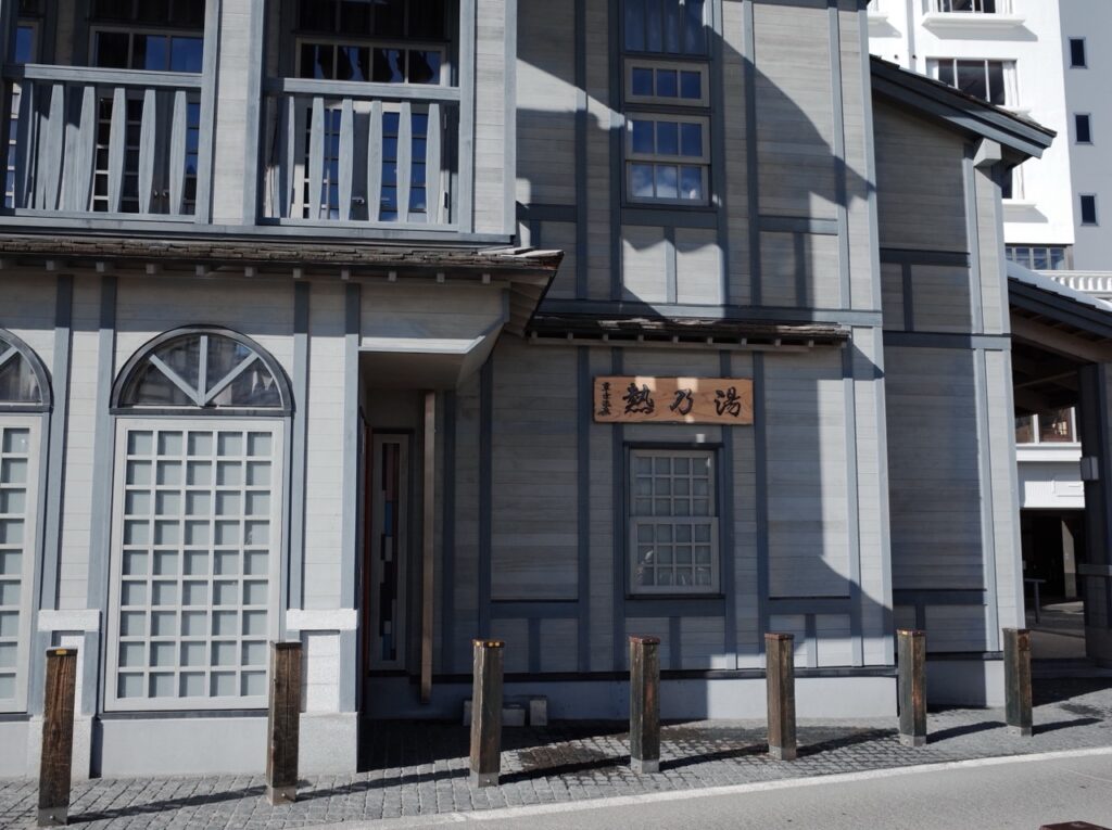 「熱乃湯」是建於1968年的兩層樓浴場,因為在2015年有翻修過,所以建築外觀和內部都看起來很新。熱乃湯就位於湯畑旁邊,最大亮點是這裡的湯揉表演,每天有數個時段可以選擇觀看。