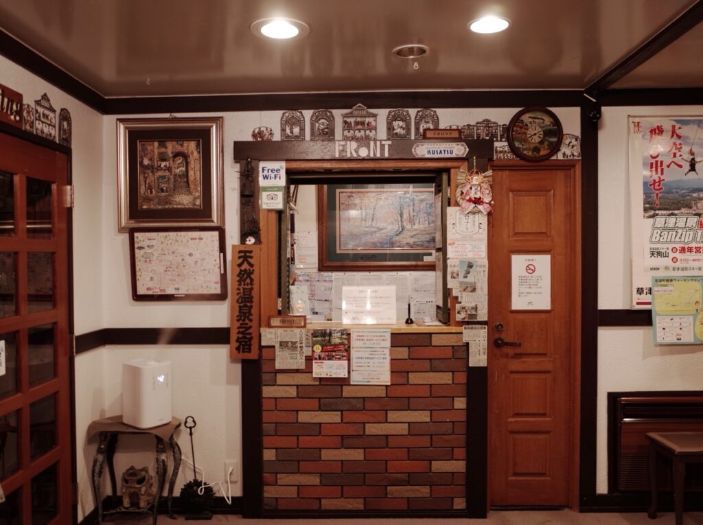 走進旅館,會先看到非常可愛的櫃檯區。旅館接待人員帶著親切的微笑,耐心介紹館內設施與草津的魅力。