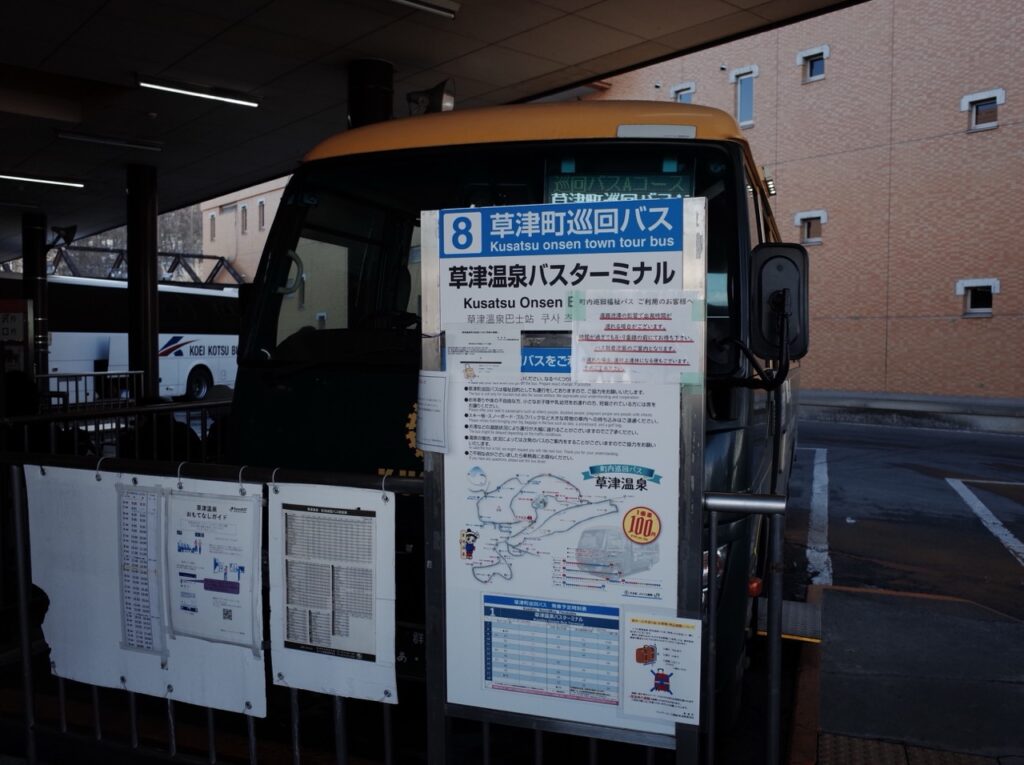 但有些飯店或民宿的位置離溫泉街較遠,如果飯店沒有提供接駁車,可以利用「草津溫泉巡迴巴士(草津温泉町内巡回バス)」前往,每次搭乘車資僅需100日圓。(草津溫泉巡迴巴士【路線圖・時刻表】)