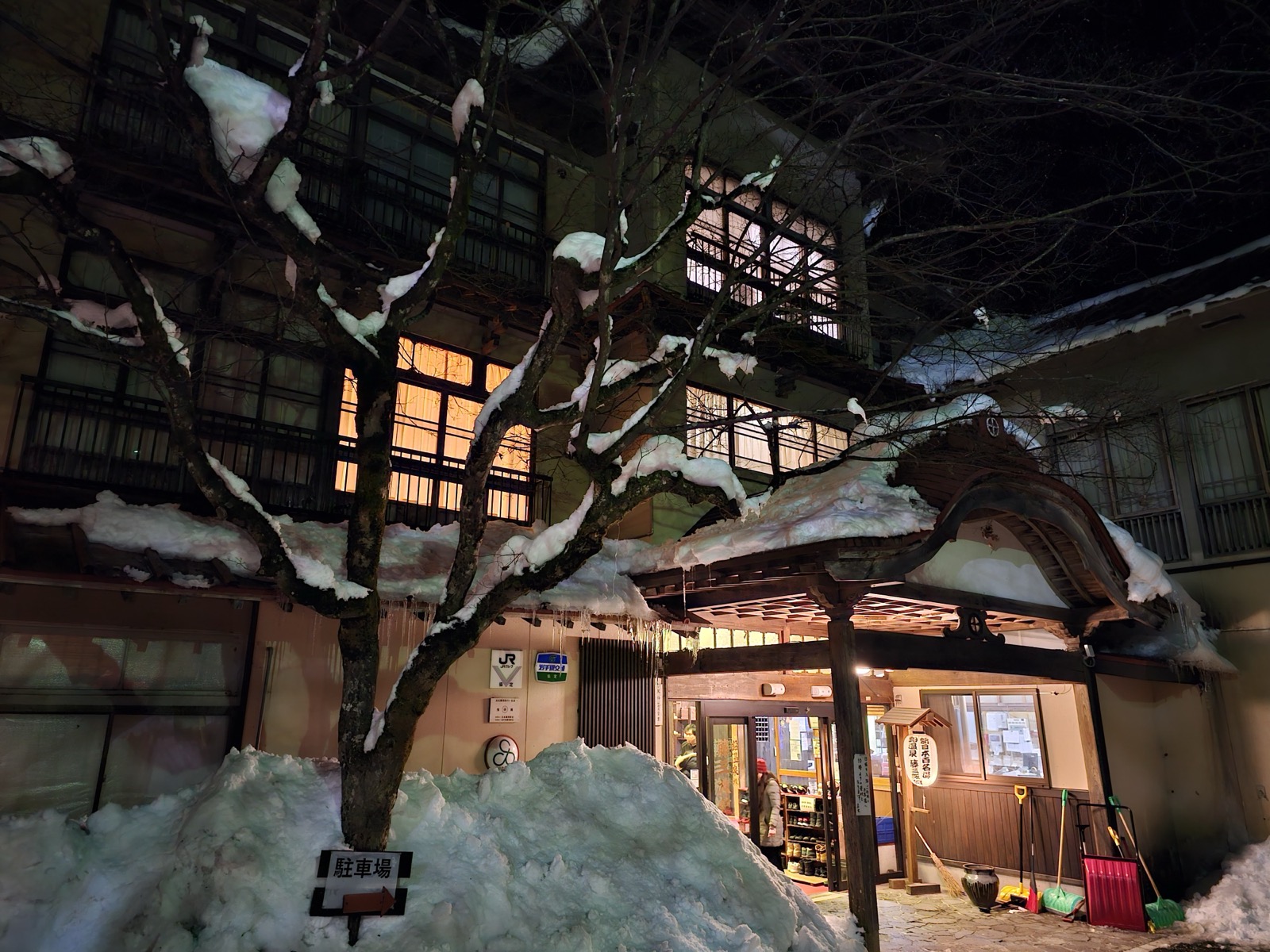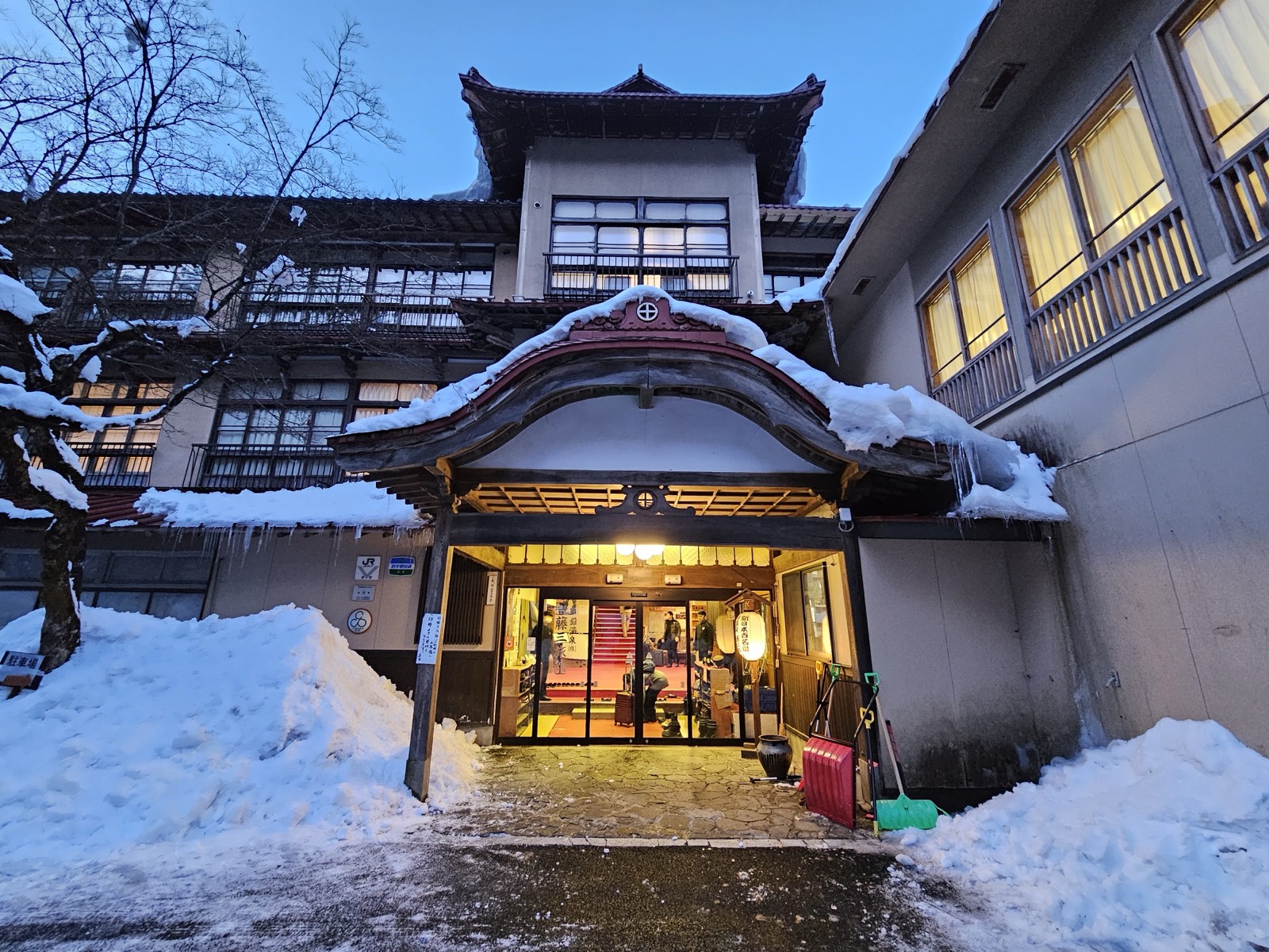 雖然在花卷溫泉鄉有很多更新穎、更大間的溫泉飯店,不過因為想感受歷史氛圍,因此特地挑「藤三旅館」入住。藤三旅館的本館建於昭和16年(1941年),為三層樓高的木造建築,至今仍保留著昭和時代的風貌。漫步其間,彷彿時光倒流,走進時代劇裡。這裡曾是文人墨客的靈感源泉,著名作家田宮虎彥在此創作了短篇小說《銀心中》,而文豪宮澤賢治的童話《滑石山的熊》(なめとこ山の熊)中,也提及了這座旅館。