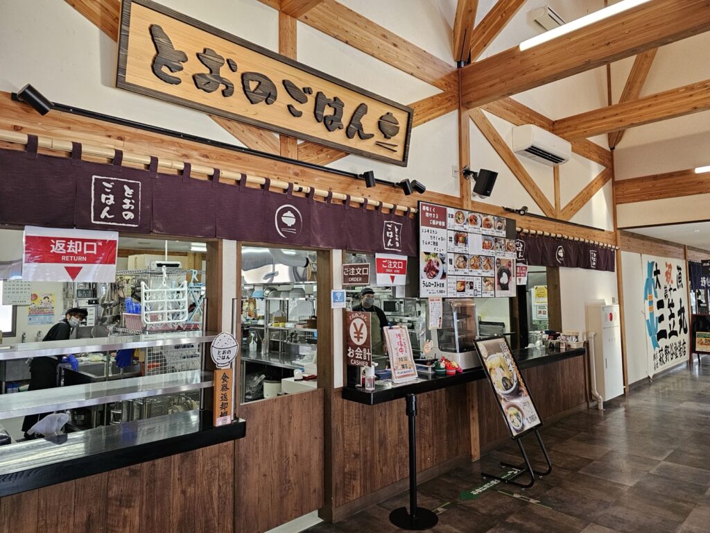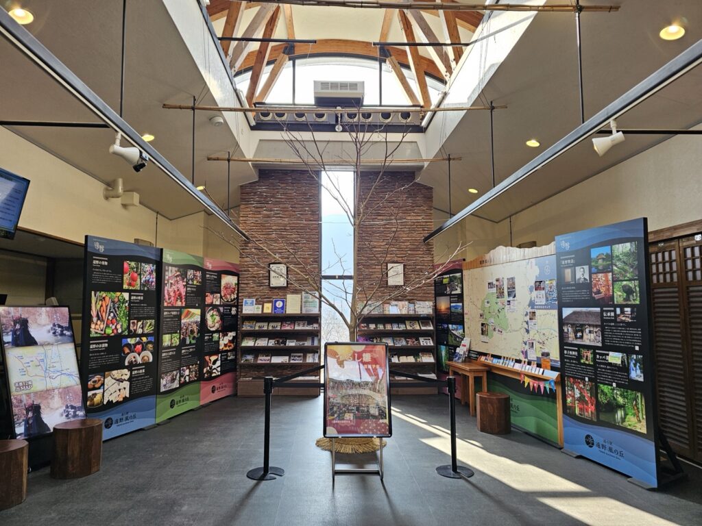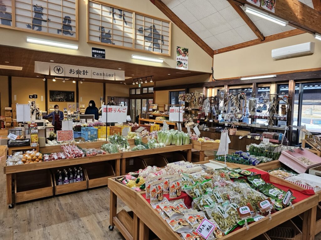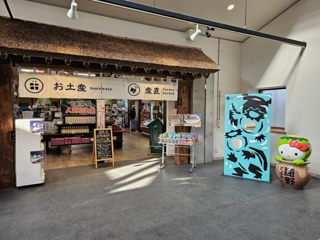 休息站內有餐飲區,可吃到遠野在地食材的美食,而一旁的商店則有販售遠野當地的新鮮蔬果、手工藝品,甚至能找到與《遠野物語》、《銀河鐵道之夜》相關的周邊商品,是個買伴手禮的好地方。此外,還可以在資訊中心找到神話巡禮的推薦路線,無論是短暫停留,或是作為旅程的起迄點,都值得一訪。