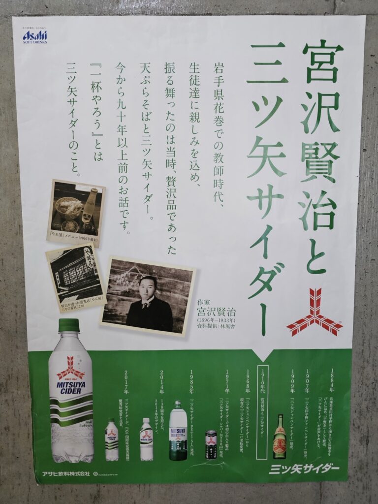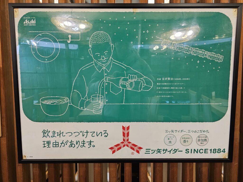 宮澤賢治生前常來此處,親切地稱呼這家店為「BUSH」。他特別喜愛店內的天婦羅蕎麥麵,總是搭配「三矢汽水」一同享用。店內至今仍保留著他當年常坐的座位,讓人彷彿穿越時光,感受那份文學氣息。如今店內菜單上還特別製作了「宮澤賢治套餐」,一份他愛天婦羅的蕎麥麵,配上一瓶三矢汽水。熱愛閱讀和喜歡創作的朋友,不妨點一份,看看文思泉湧的秘密,是不是藏在這份美食清單裡?