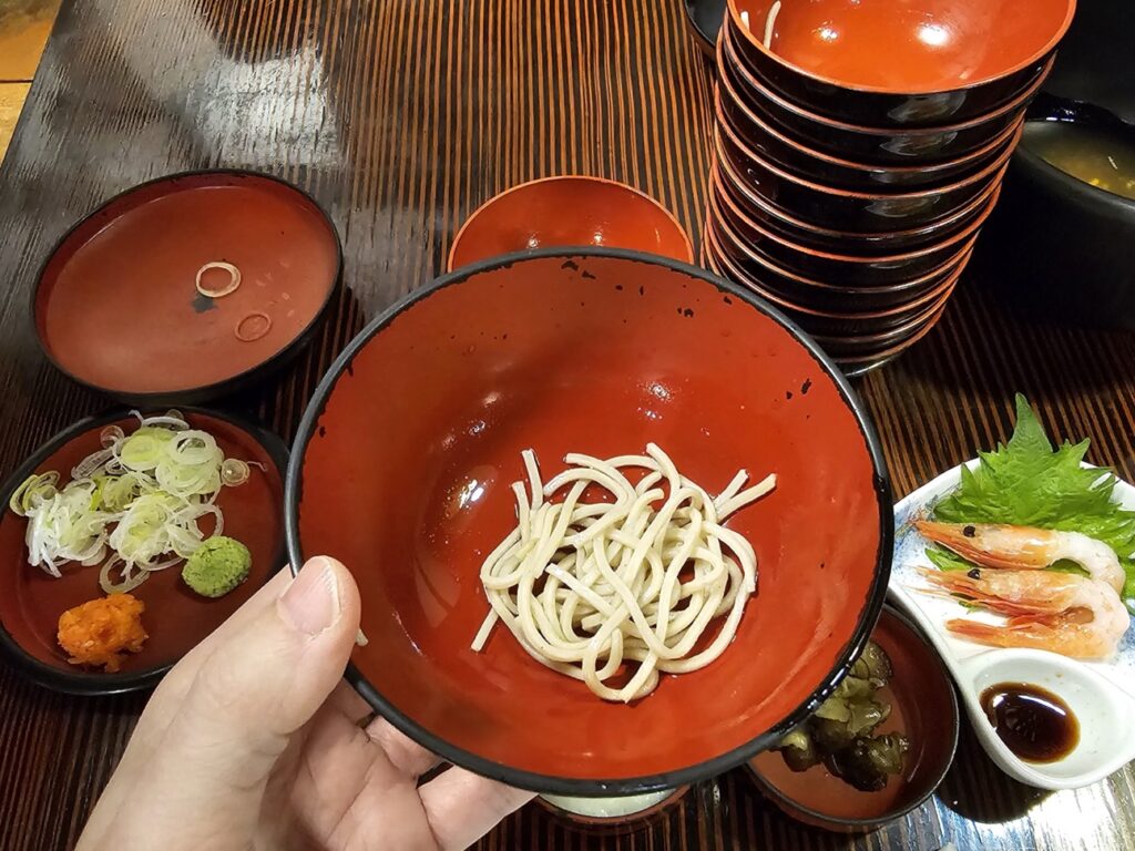 「碗子蕎麥麵」是岩手特色料理,據說花卷是 「碗子蕎麥麵」 的發源地,這種將小碗蕎麥麵不斷添加,直到食客蓋上碗蓋為止的獨特用餐方式,成為當地的特色美食。