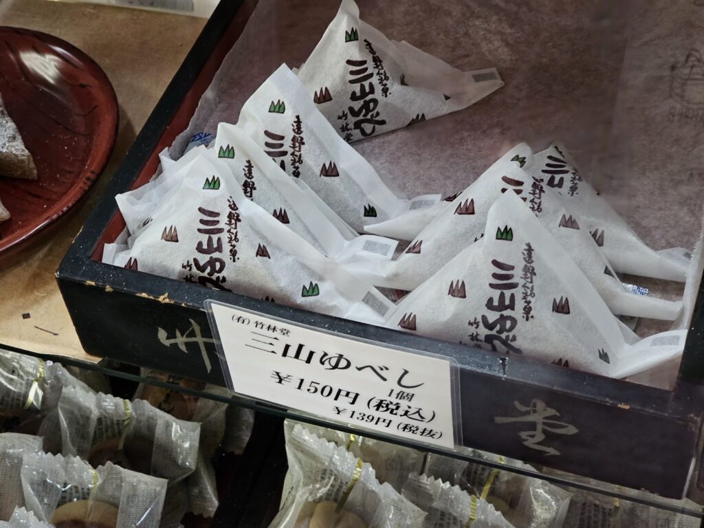 另一間「竹林堂」也是以製作傳統和菓子聞名的在地店家,不過種類與「鶴乃屋」的不大一樣,特別是遠野名產「明がらす」和「三山ゆべし」是該店最受歡迎的暢銷商品。如果要送人禮物,那麼挑選他們的點心禮盒作為送禮佳品,很能展現遠野的風味。